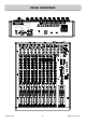 USB & MASTER SECTION 1 2 AUX1 OUT INSERT L MAIN OUT 1 Aux output jack sockets Standard 1/4” jack sockets for Aux 1 to 4 outputs. Impedance balanced, nominal level = 0dBu. 2 Mix L R Insert jack sockets Standard 1/4” (6.25mm) Jack sockets for unbalanced insert send and return signals. Wired Tip = send, Ring = return, Sleeve = Chassis. Nominal level is 0dBu. 3 Main L R output xlr sockets Main left & right outputs. Impedance balanced signals, pin1 = chassis, pin2 = hot (+), pin3 = cold (-).