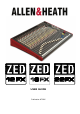 CONTENTS Thank you for purchasing your Allen & Heath ZED mixer. To ensure that you get the maximum benefit from the unit please spare a few minutes familiarizing yourself with the controls and setup procedures outlined in this user guide. For further information please refer to the additional information available on our web site, or contact our technical support team. http://www.allen-heath.com http://www.allen-heath.com/zed http://www.myspace.com/thezedspace Warranty......................................