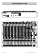 SPECIFICATIONS Operating Levels Input Mono channel (XLR) Input +6 to –63dBu for nominal (+17dBu in max) Mono channel Line Input (Jack socket) +10 to –26dBu (+30dBu maximum) Insert point (TRS Jack socket) 0dBu nominal +21dBu maximum Stereo Input (Jack sockets) 0dBu nominal (control = Off to +10dB) Stereo input (phono sockets) 0dBu nominal (control = Off to +10dB) Output L, R & Mono Outputs (L&R XLR, Mono Jack) 0dBu nominal. +21dBu maximum. Aux Outputs (Jack sockets) 0dBu nominal. +21dBu maximum.
