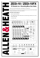 ZEDi-10 / ZEDi-10FX 10 Channel Live + Recording Mixer User Guide Thank you for purchasing this Allen & Heath ZEDi-10 or ZEDi-10FX! We recommend that you read all of this user guide to get the best from your mixer and after reading, please keep this safe for future reference. Included in this package is: ZEDi-10 / ZEDi-10FX Mixer. IEC C5 Mains Power Cable. Please check correct mains plug is fitted for your country. USB A-B Cable 2M.