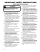 IMPORTANT SAFETY INSTRUCTIONS (SAVE THESE INSTRUCTIONS) 14. The interior of the dryer and the exhaust duct should be cleaned periodically by qualified service personnel. WARNING To reduce the risk of fire, electric shock, or injury to persons when using your dryer, follow these basic precautions: W034 1. Read all instructions before using the dryer. 2. Refer to the GROUNDING INSTRUCTIONS in the INSTALLATION manual for the proper grounding of the dryer. 3.