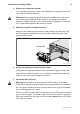Installation and Safety Guide 5 4. Prepare the expansion module. In an antistatic environment, remove the module from its packing material. Be sure to observe ESD precautions. Warning Do not attempt to install an expansion module without observing correct antistatic procedures. Failure to do so may damage the switch or expansion module. If you are unsure what the correct procedures are, contact your authorised Allied Telesis distributor or reseller. 5. Slide the expansion module into place.