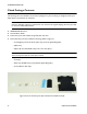 AT-EN646MOD Installation Guide Splice the Drop Cable and Securing the Fusion Splice Tray 1. Locate the fusion splice tray (single-part plastic) and the fiber splice clip in the accessory kit. 2. Select the size of the fiber slice clip you are using (2mm for blue or 3 mm for black). 3. Trim off a 4-section piece and snap this into the splice tray, as shown in Figure 20. Figure 20. Inserting fiber splice clip 4.