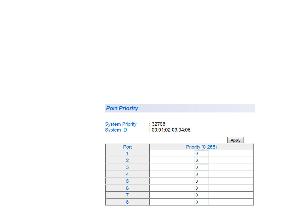 value applies to the switch. See “System Priority” on page 107.