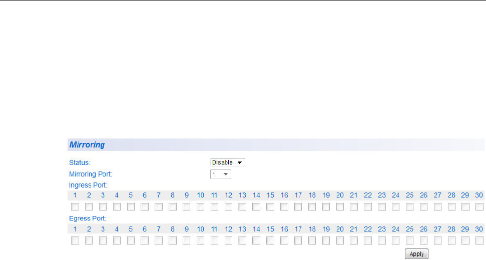 4. Click Mirroring Port and from the pull-down menu, select the port.