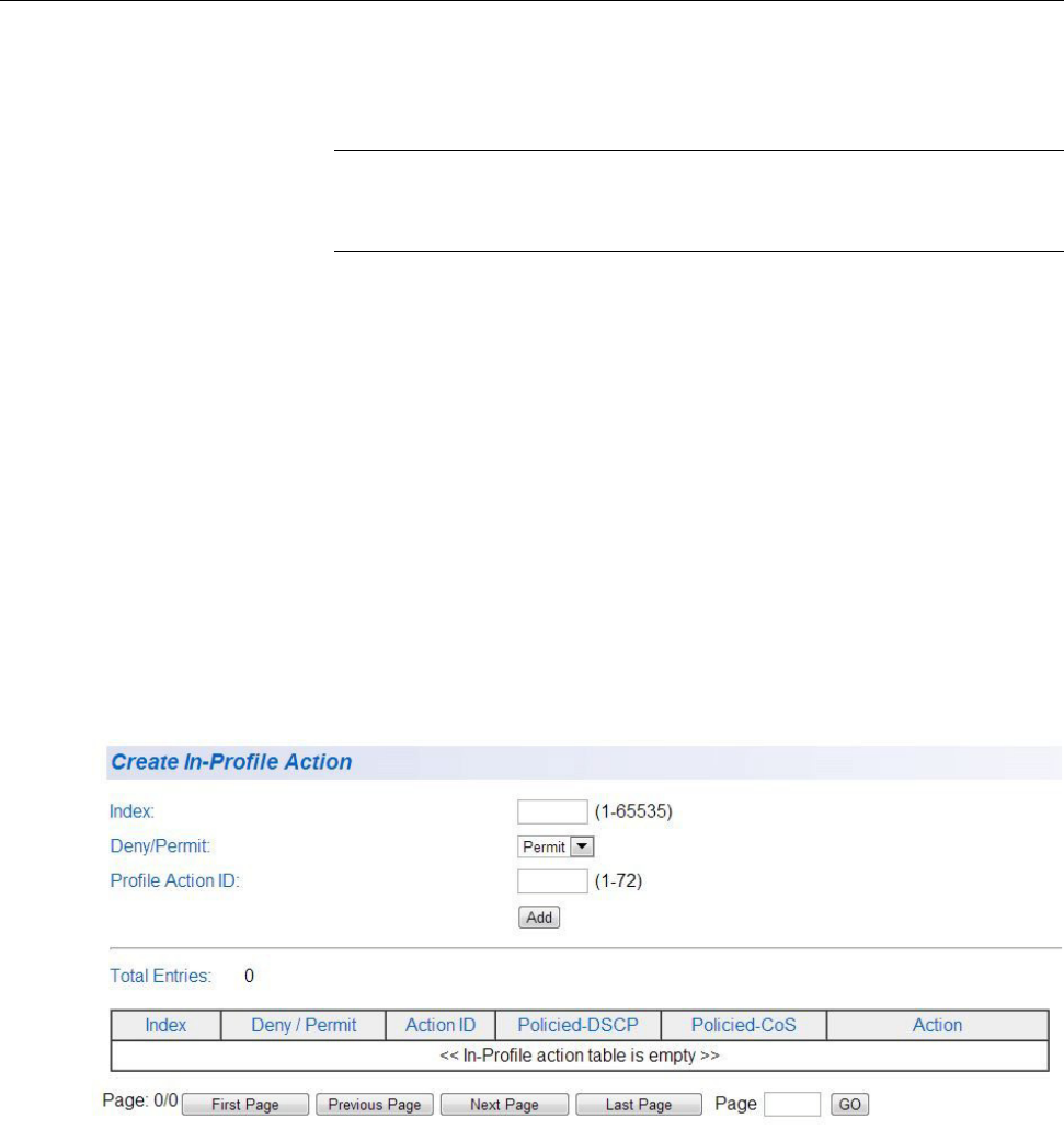 3. Enter a number in the In-Profile Action Index field. The Index must be