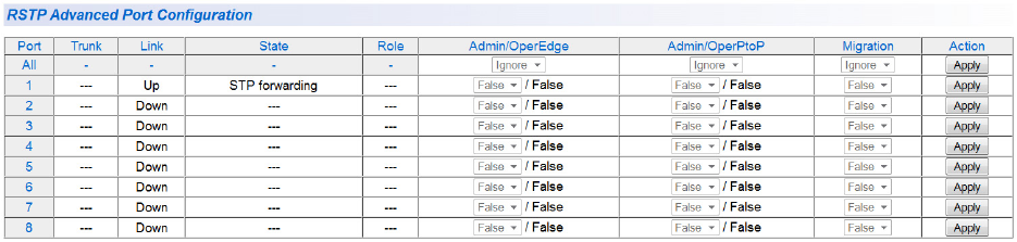 To configure the advanced RSTP port settings, perform the following