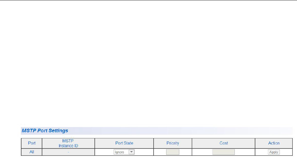 The MSTP Port Settings Page is displayed. See Figure 28.
