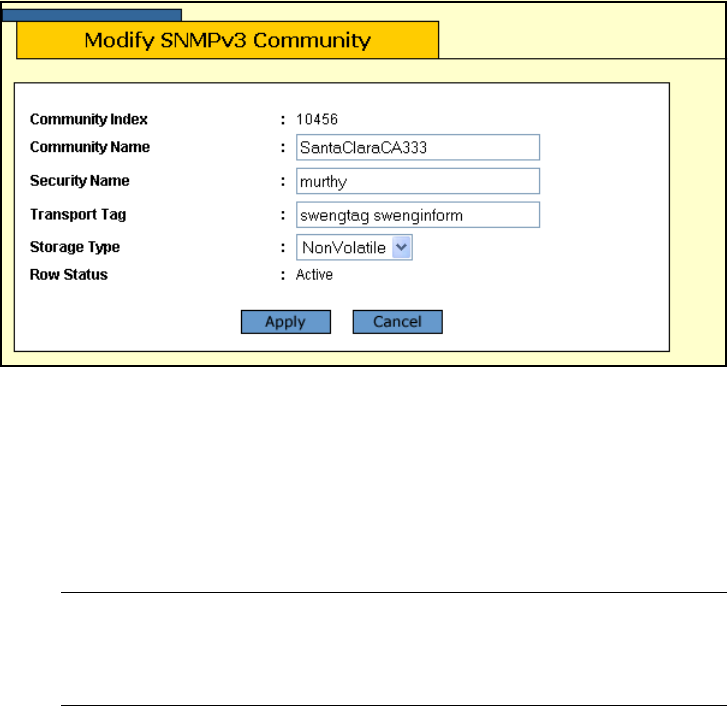The Modify SNMPv3 Community Table Page is shown in Figure 82.