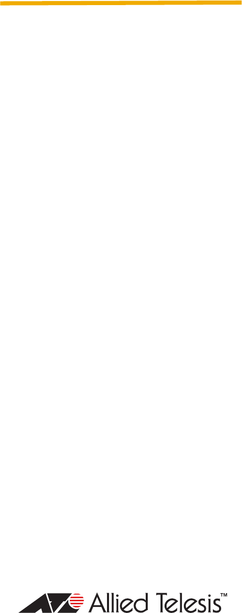 Copyright © 2008 Allied Telesis, Inc. All rights reserved. No part of this publication may be reproduced without prior written permission from Allied Telesis, Inc. Allied Telesis and the Allied Telesis logo are trademarks of Allied Telesis, Incorporated. Microsoft and Internet Explorer are registered trademarks of Microsoft Corporation. Netscape Navigator is a registered trademark of Netscape Communications Corporation.
