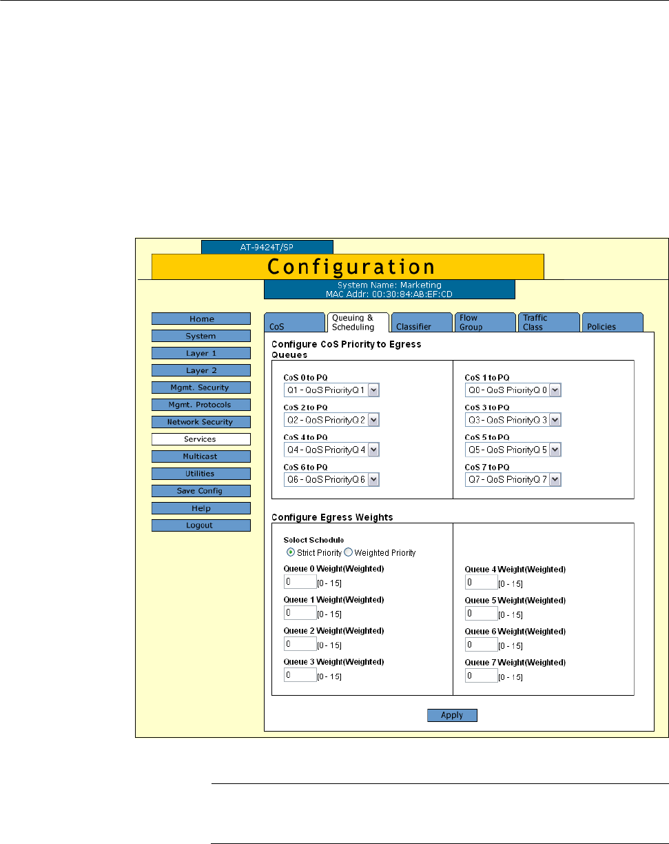 next procedure, “Configuring Egress Scheduling” on page 160.