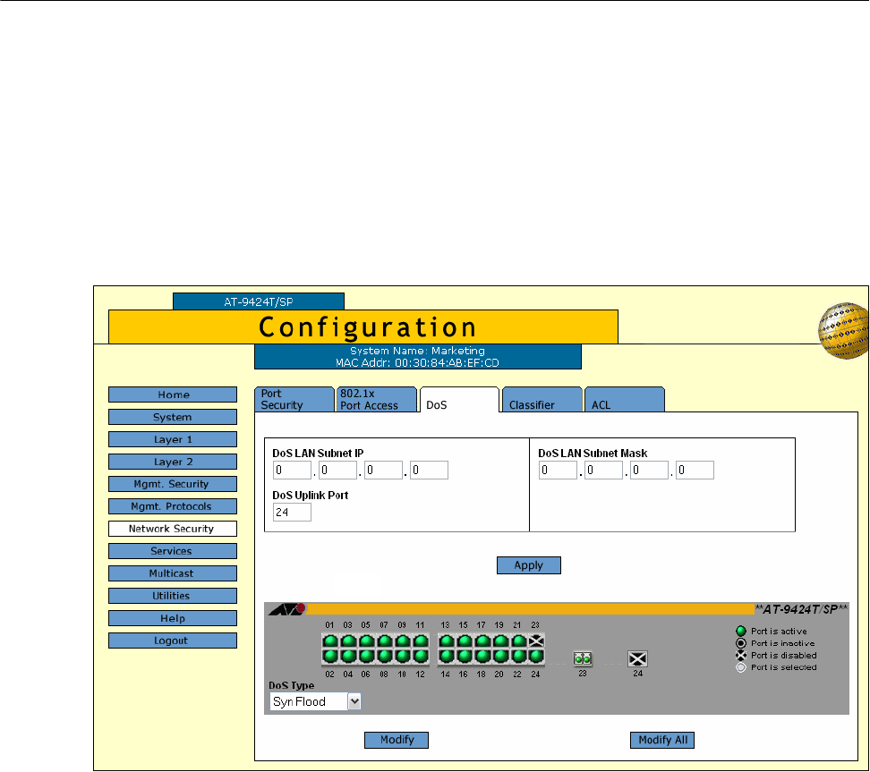 a. In the DoS LAN Subnet IP field, enter the IP address of one of the
