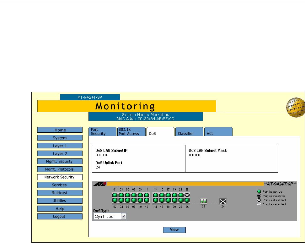 5. Using the DoS Type list, select the type of Denial of Service defense