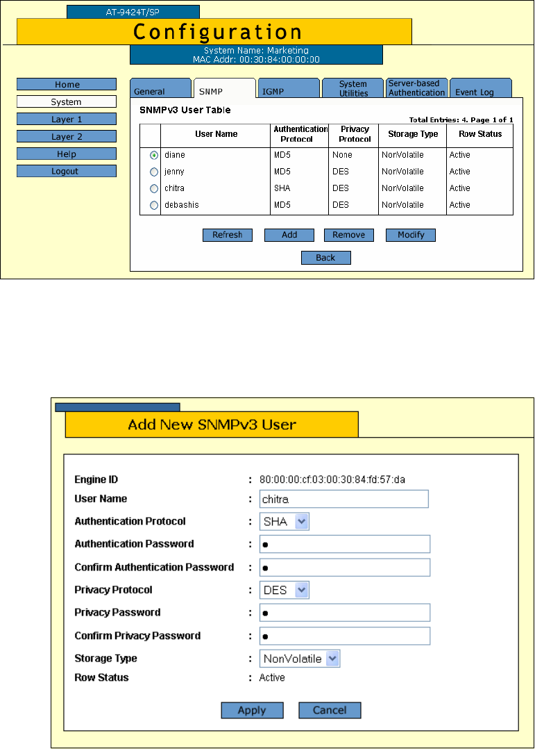Figure 76. SNMPv3 User Table Tab (Configuration)