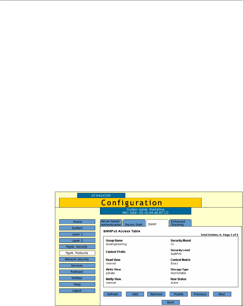 For information about the SNMPv3 Access Table, see Chapter 21,