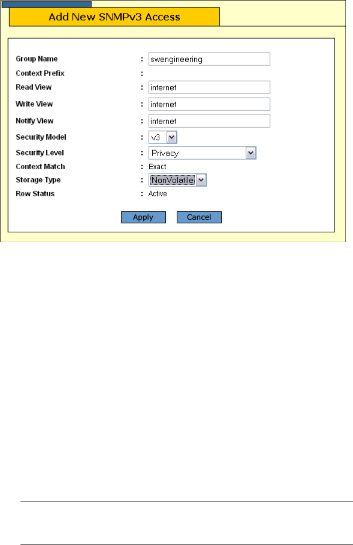 SNMPv3 Access Table entry is indexed with the Group Name, Security