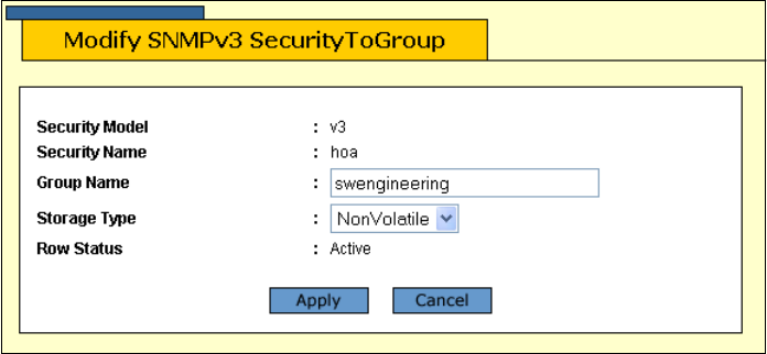 Figure 87. Modify SNMPv3 SecurityToGroup Page