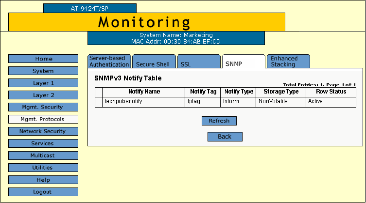 Figure 105. SNMPv3 Notify Table Tab (Monitoring)