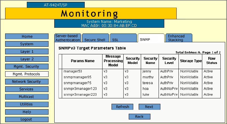 Figure 107. SNMPv3 Target Parameters Table Tab (Monitoring)