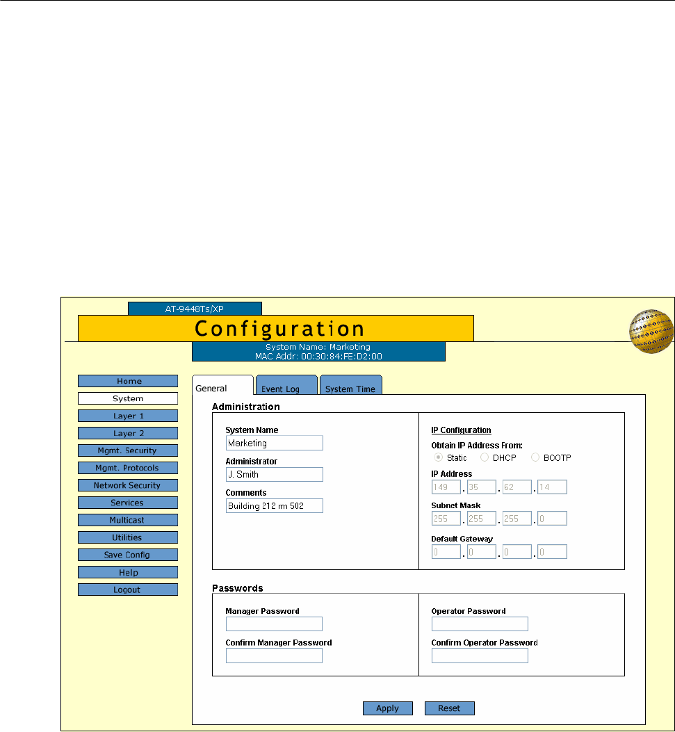 - Returning the AT-S63 Management Software to the Factory Default Values
