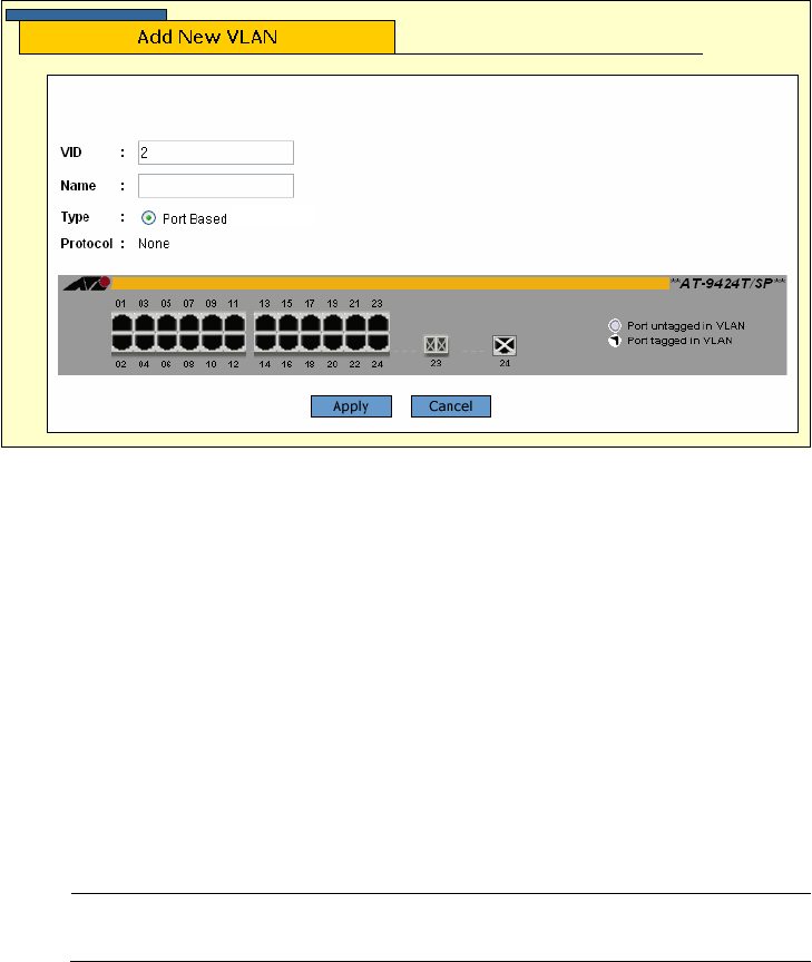 Enter a VID value for the new VLAN. The range of the VID value is 2 to