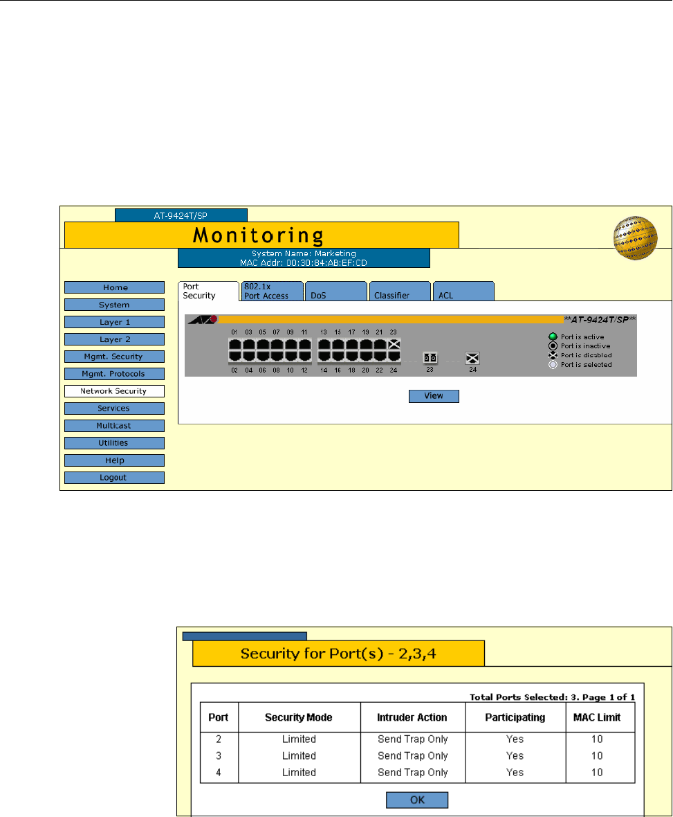 4. Click View. The Security for Port(s) page is shown in Figure 143.