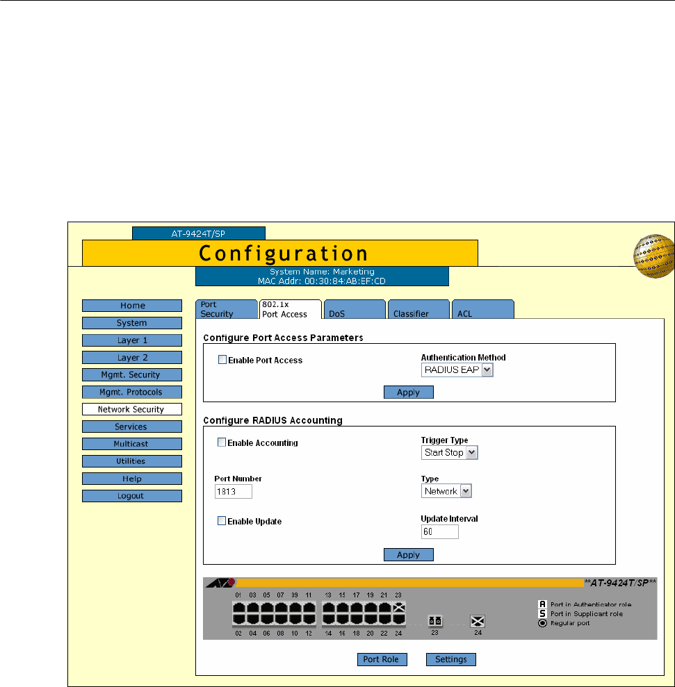 Figure 144. 802.1x Port Access Tab (Configuration)