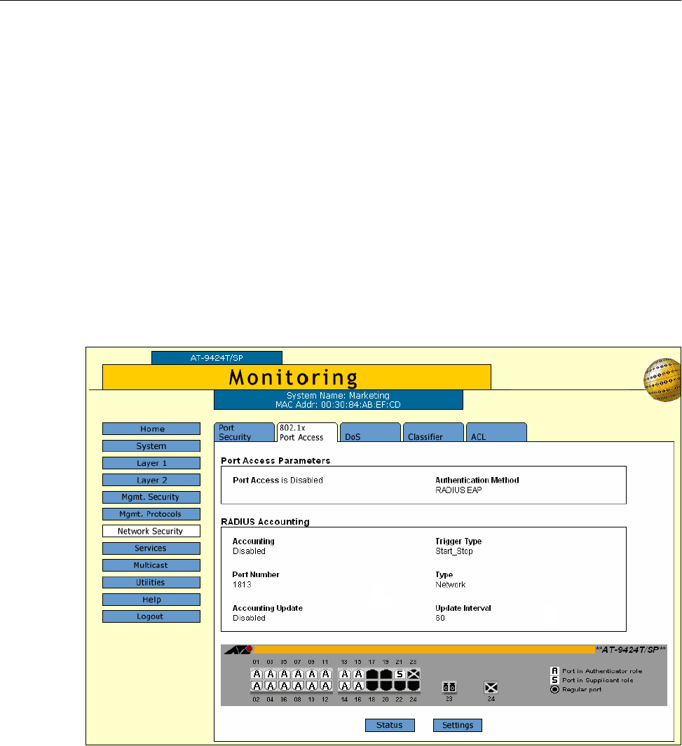 Figure 148. 802.1x Port Access Tab (Monitoring)