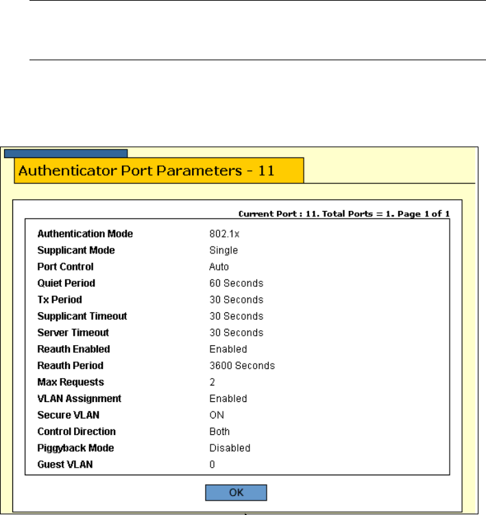 Figure 150. Authenticator Port Parameters Page