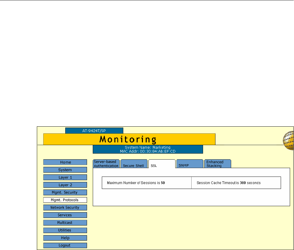 To configure the SSL settings, you must use the AT-S63 menus or
