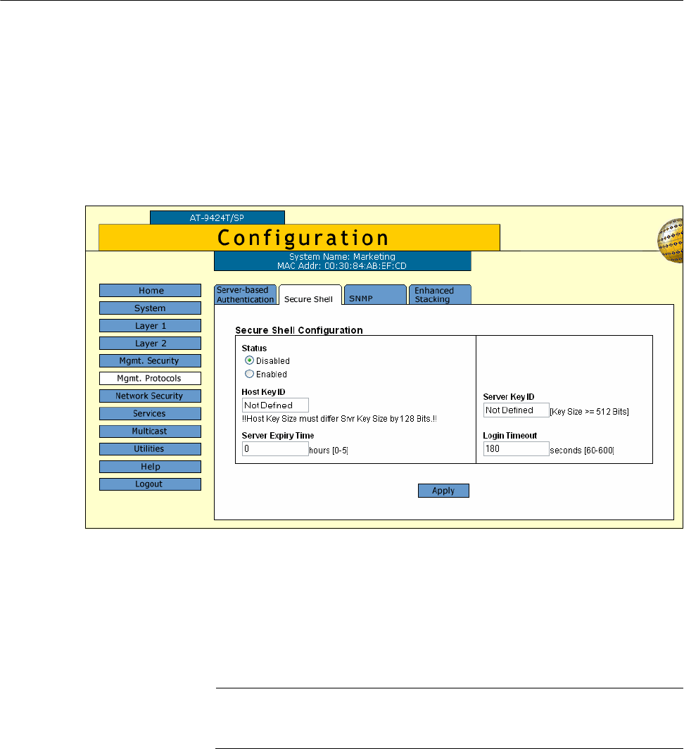 2. From the Configuration menu, select the Mgmt. Protocols option.
