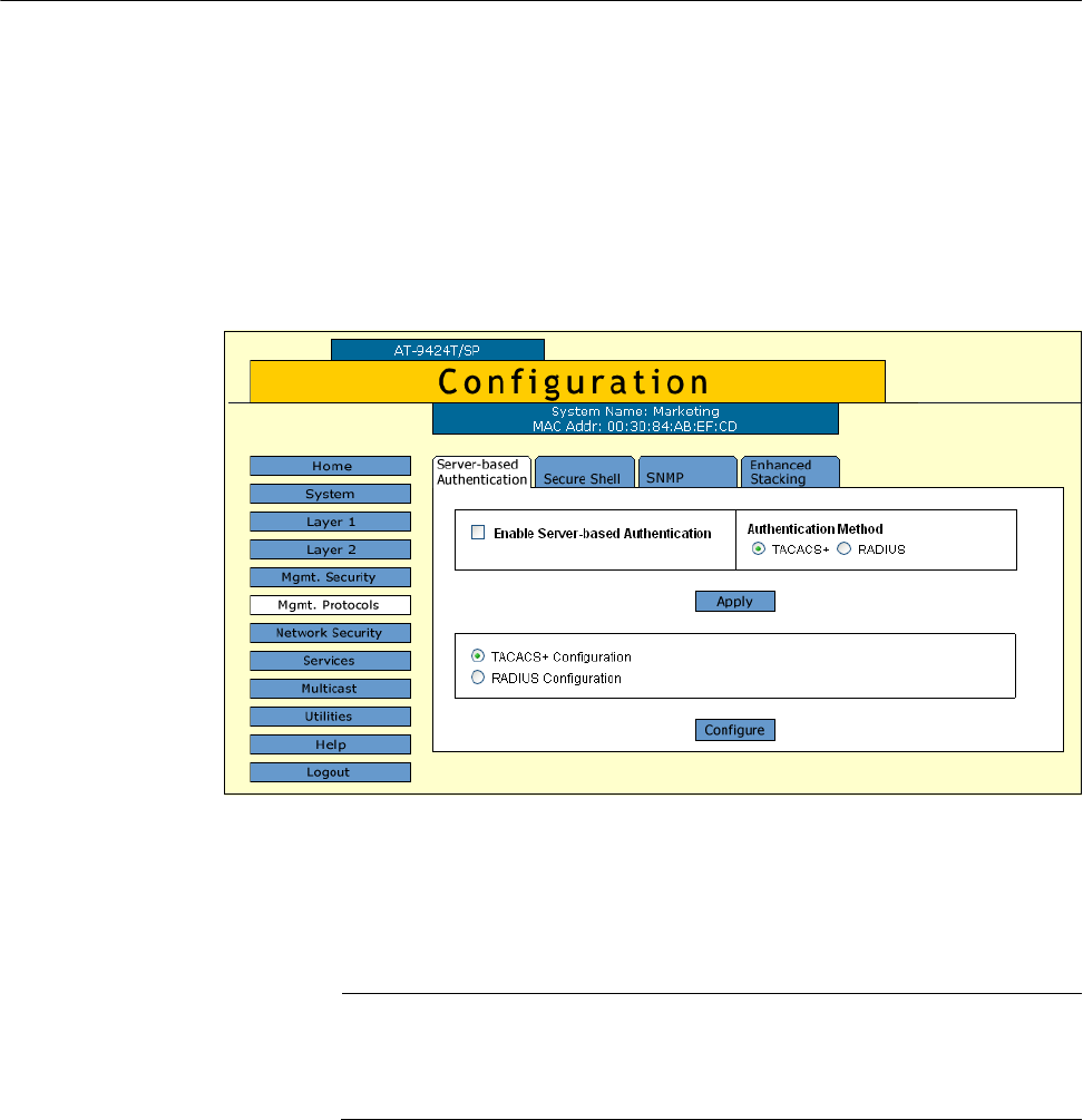 2. From the Configuration menu, select the Mgmt. Protocols option.