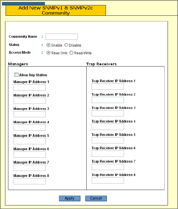 Figure 16. Add New SNMPv1 & SNMPv2c Community Page