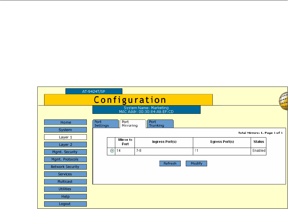 Figure 26. Port Mirroring Tab (Configuration)