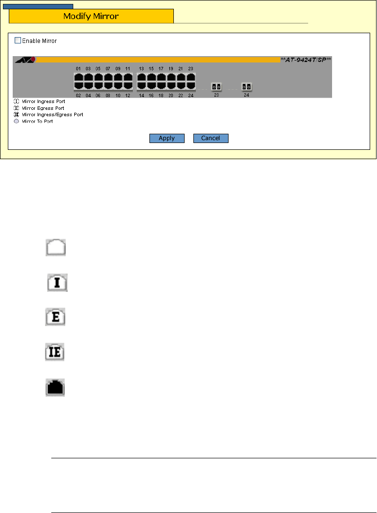 5. Click the ports to be in the port mirror. Clicking a port toggles it through