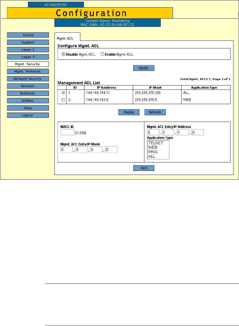 Figure 168. Mgmt. ACL Tab (Configuration)