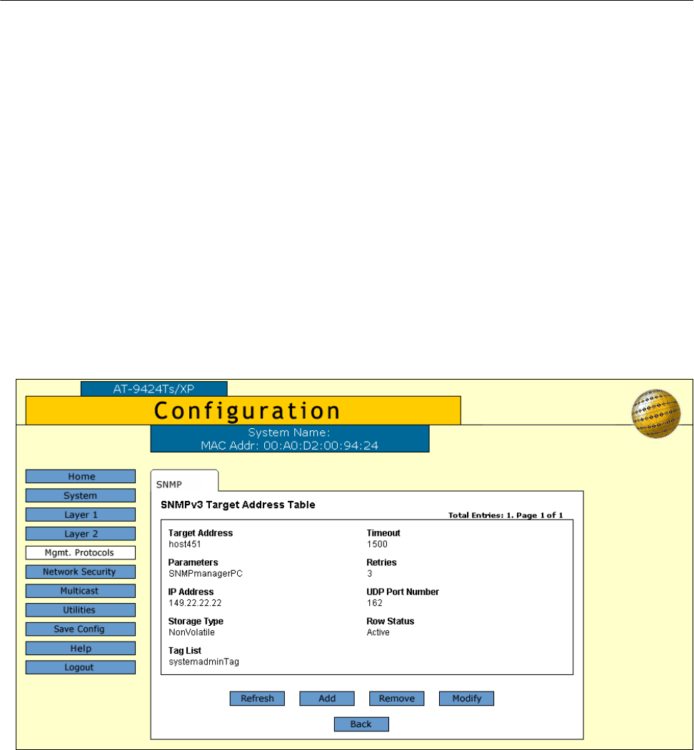 SNMPv3 Target Address Table tab shown in Figure 53.