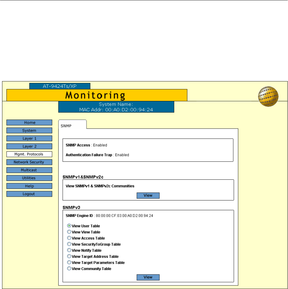 2. From the Monitoring menu, click the Mgmt. Protocols button.