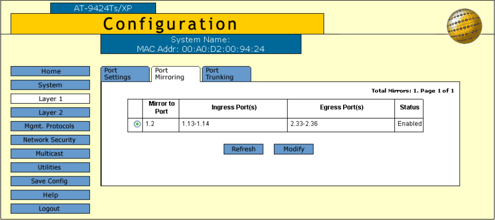 Figure 25. Example of the Port Mirroring Tab