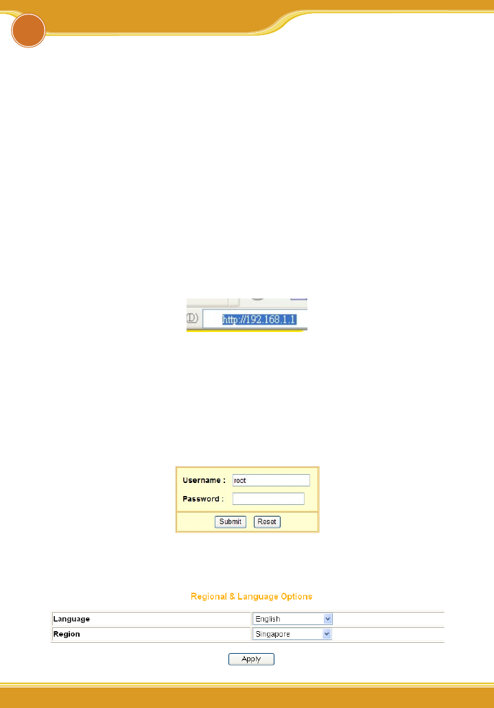 (2) Type [192.168.1.1] in the browser’s address bar, press [Enter].