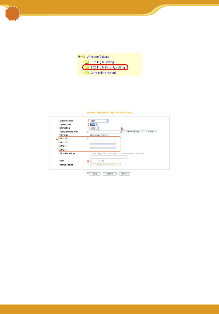 bar, press [Enter]. Enter the function menu, ad click on [802.11g/b Security set-