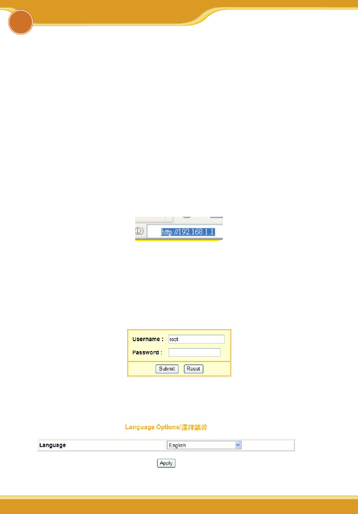 (2) Type [192.168.1.1] in the browser’s address bar, press [Enter].