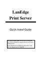 LanEdge Print Server Quick Install Guide This Quick Install Guide contains brief instructions only, and is intended for experienced users or Network Administrators. If this information is insufficient, please refer to the full User Manual on the CD-ROM.