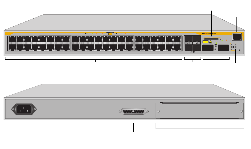 Figure 4 shows the x600-48Ts/XP switch front and rear panel.
