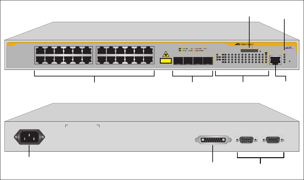 Figure 5 shows the x600-24Ts-POE switch front and rear panel.