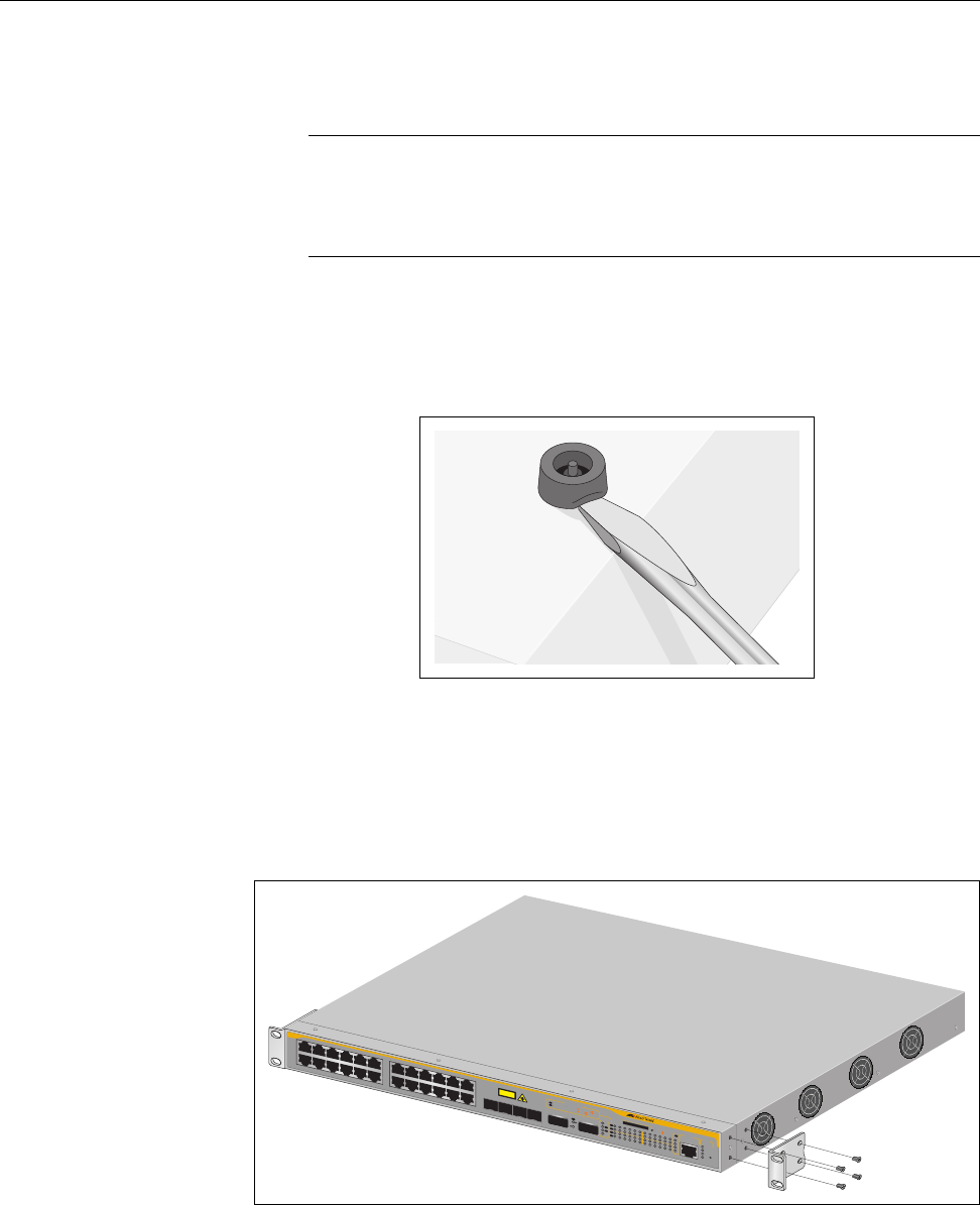 4. Attach a rack-mount bracket to one side of the switch using four of the