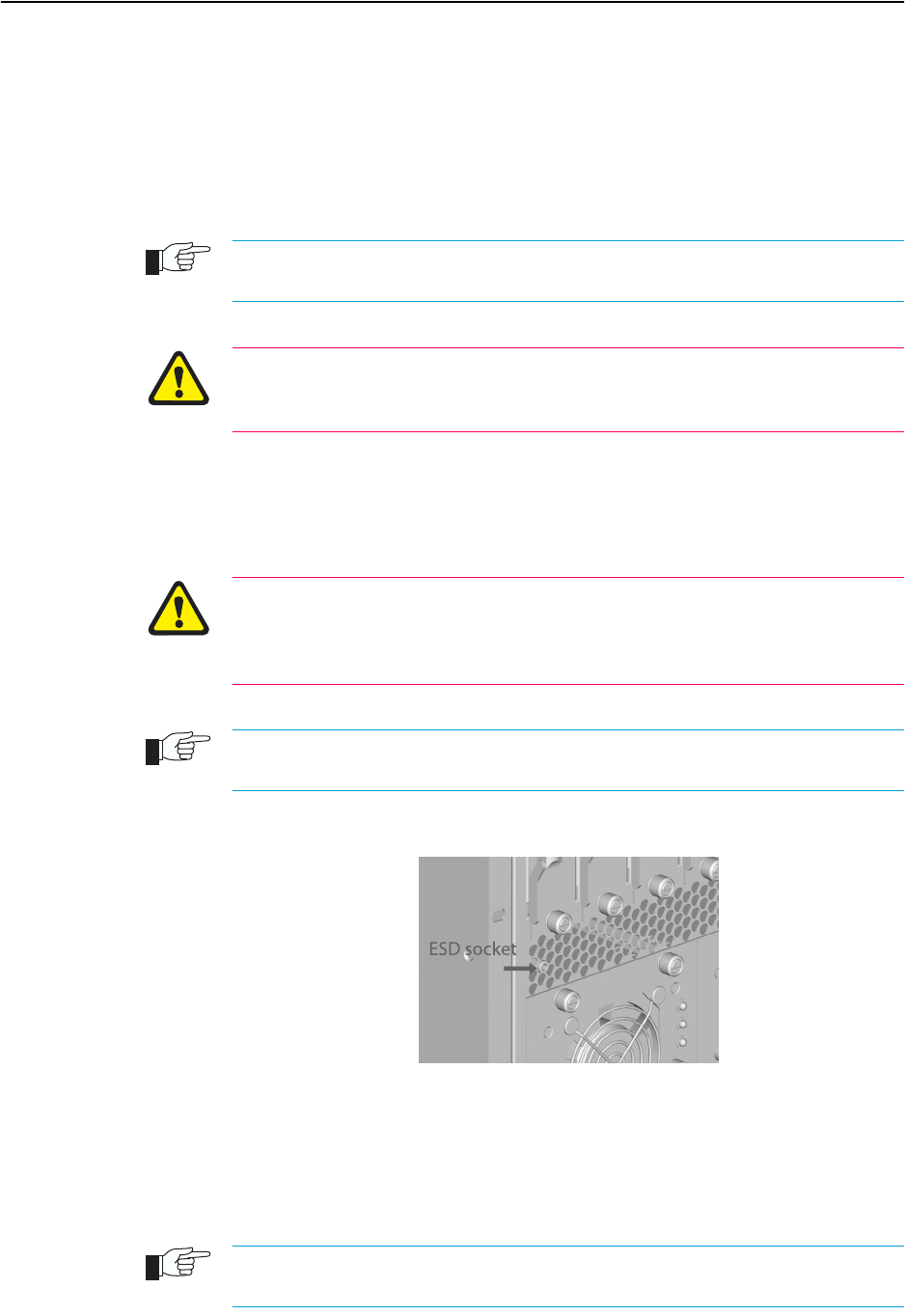 An ESD socket is provided on the front panel of the SwitchBlade chassis (see Figure 1