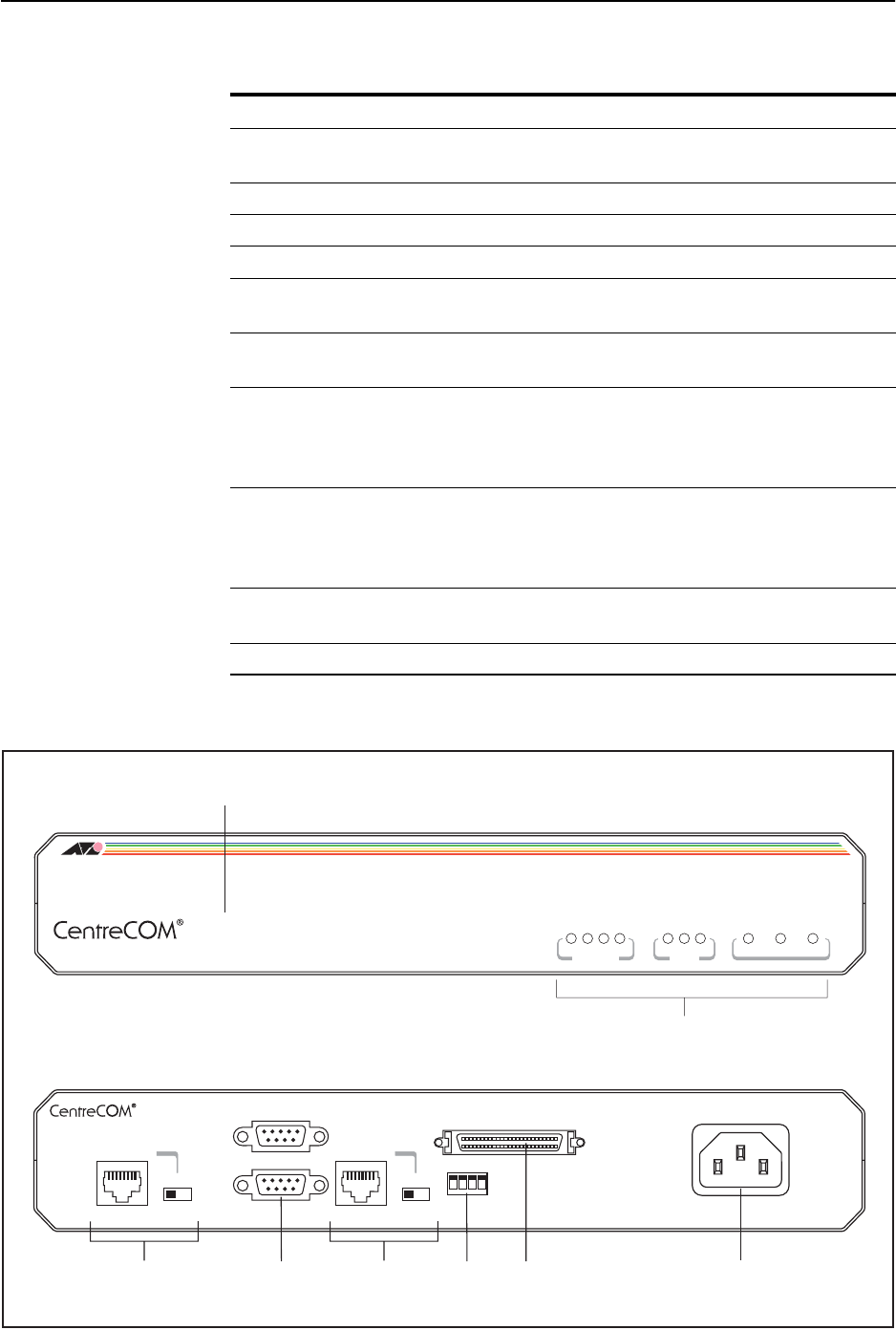 Figure4: Front and rear panels of the AT-AR320/AT-AR330 router.