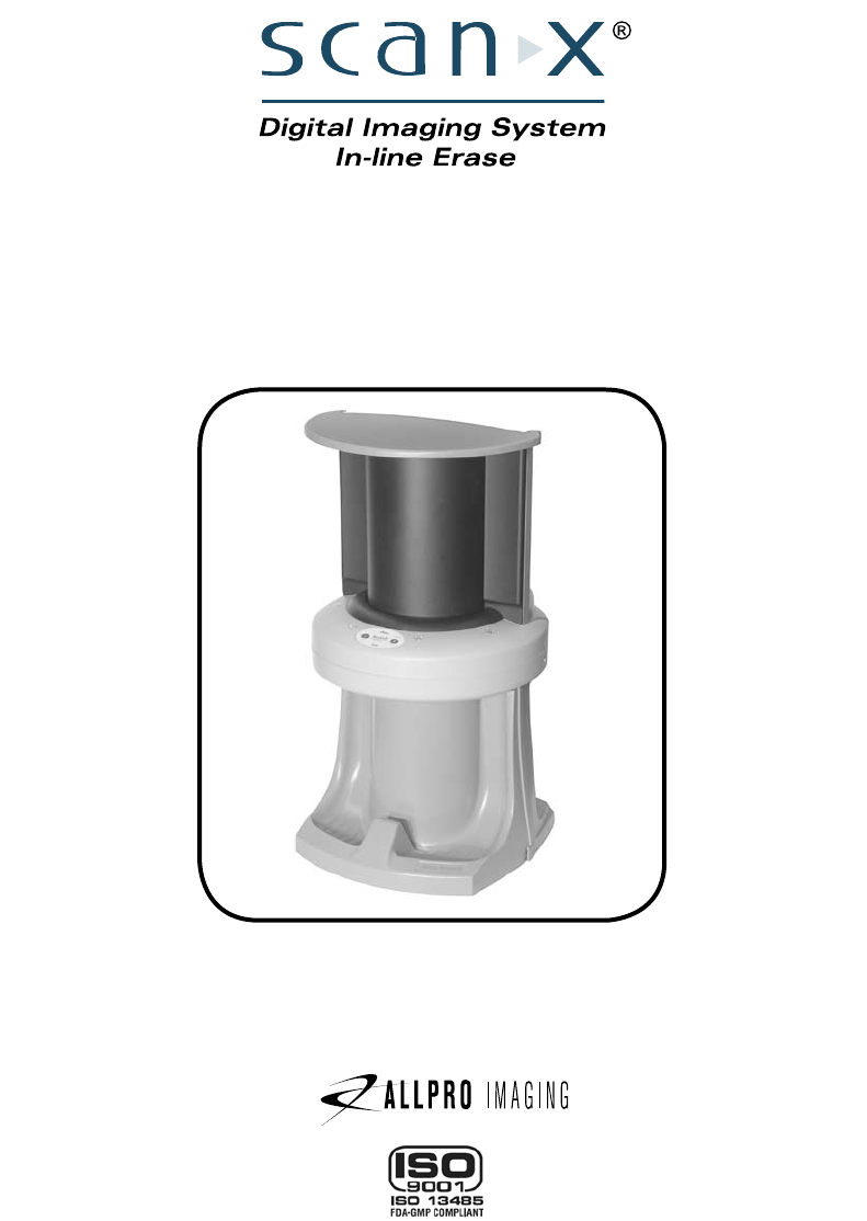 CONGRATULATIONS Congratulations on your purchase of the ScanX® 12 Digital Imaging System with In-Line Erase the latest imaging product from Air Techniques, Inc./ALLPRO Imaging. The ScanX® 12 processes Phosphor Storage Plates (PSPs) and has been designed and manufactured using state-of-the-art technology to give many years of dependable service. The ScanX® 12 is hereafter referred to as ScanX in this manual. This manual covers the installation, operation and maintenance of the ScanX.
