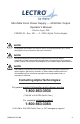 4. Operation 4.1 Changing the output voltage (PSF-MMP-AXX only) The Lectro Mini-Mite Ferro Power Supply is designed to provide regulated 30V or 60V from the 120Vac power line. The power output is normally configured for 60V and can be changed to provide 30V via the following procedure. 60V – 30V CONVERSION PROCEDURE 1. Verify AC is disconnected. 2. Cut yellow wire 2” from end of heat shrink tubing, strip 1/ 2” from end. 3. Remove the wire nut from the blue wire, twist ends of Yellow, Blue wires together.
